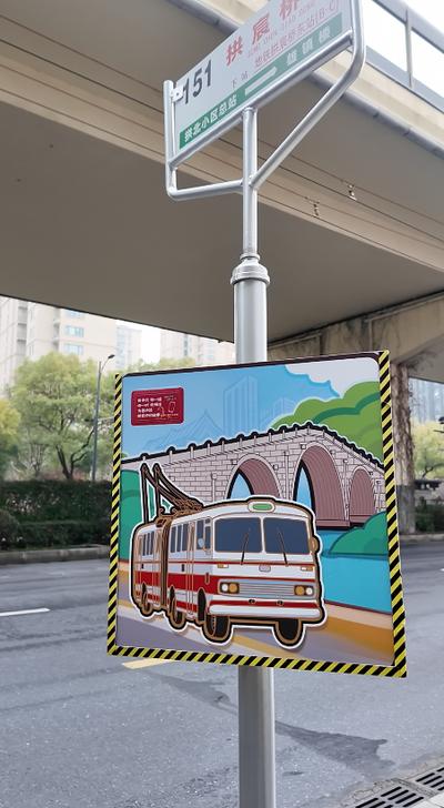 线路升级不止于车厢内外。杭州公交在151路沿途雄镇楼、城站火车站南、拱宸桥东、武林小广场、哑巴弄5个极具历史风貌的复古站台,创新性加装了NFC感应装置,将科技与人文情怀巧妙融合。市民候车时,只需用开启NFC功能的智能手机轻触站牌标识区,就能聆听安峰用杭州话讲述的站点故事——或是拱宸桥下的运河旧事,或是城站街头的岁月变迁,亦或是“哑巴弄”背后的市井传说,让等待时光成为读懂杭州烟火与底蕴的契机。