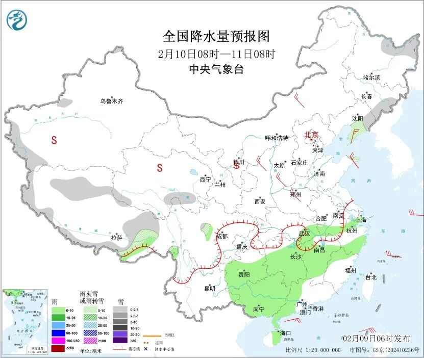 今明两天有小雨,需注意弱降雨对春运交通、旅游安全等的不利影响。