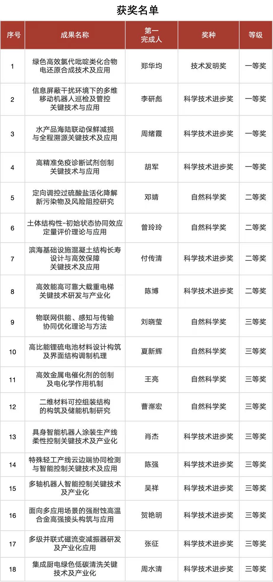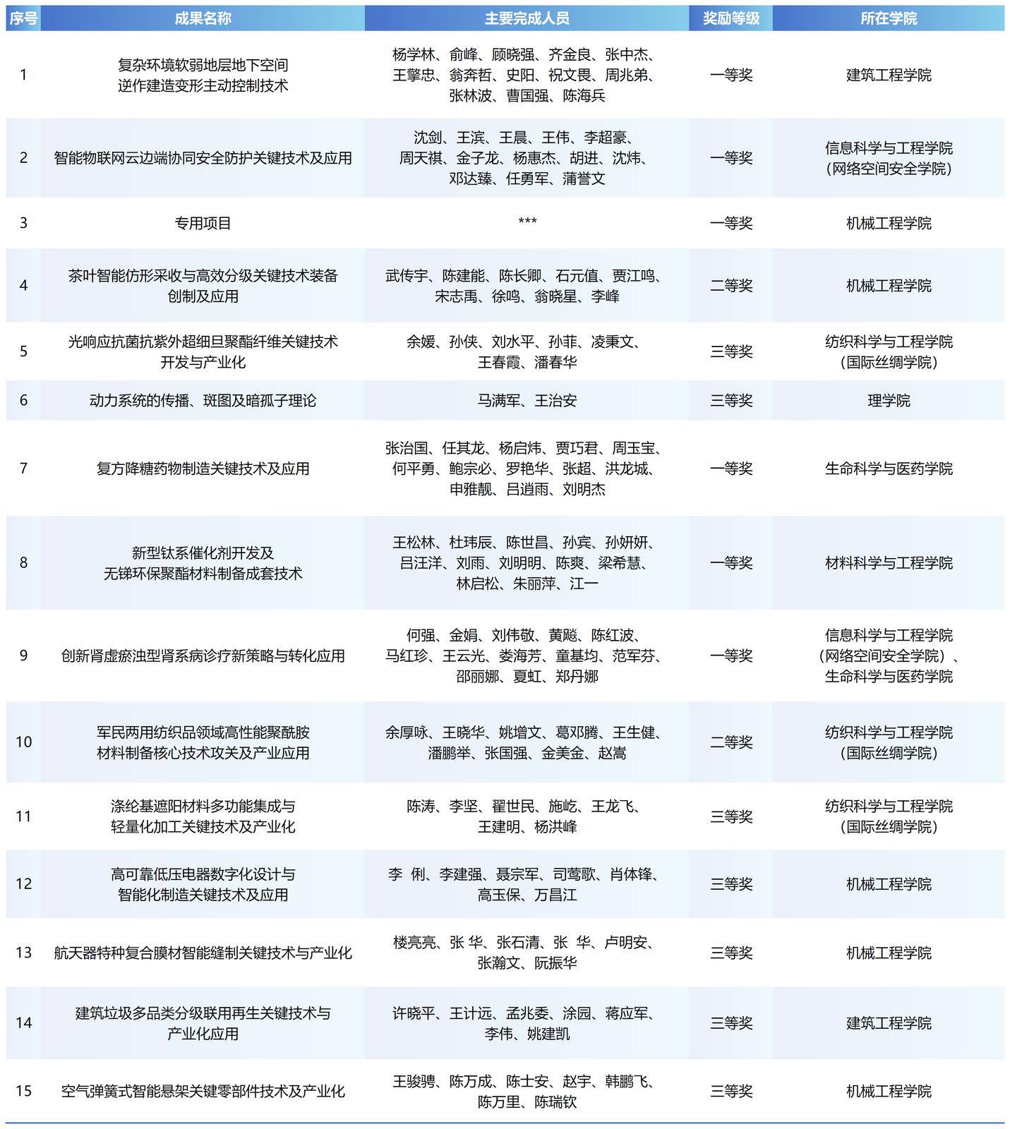 共有18项成果获奖,其中主持获得一等奖2项(1项专用项目)、二等奖3项、三等奖3项。该校计算机学院邬惠峰教授等2人主持完成的项目,双双荣获浙江省科学技术进步奖一等奖。