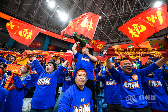 并肩。赛场之上球员奋勇争先,赛场之下啦啦队亦是球队最坚实的后盾,堪称当之无愧的“最佳第六人”。图为浙BA总决赛的热烈现场,杭州球迷们摇旗呐喊、共赴热爱。