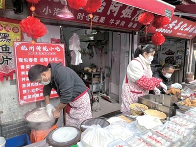 忙碌的春卷摊 记者 孙蒨 摄