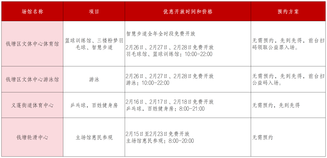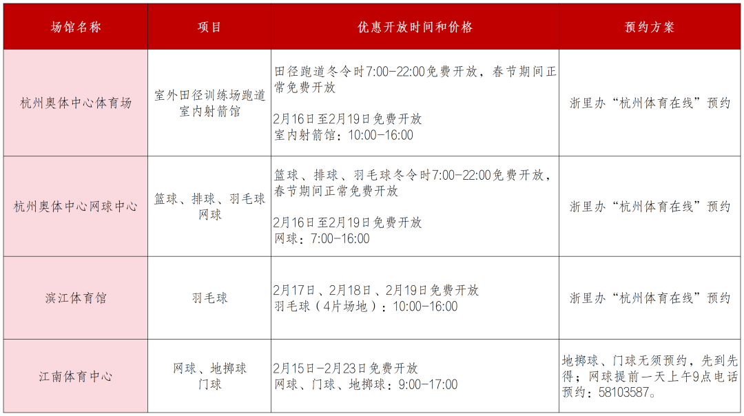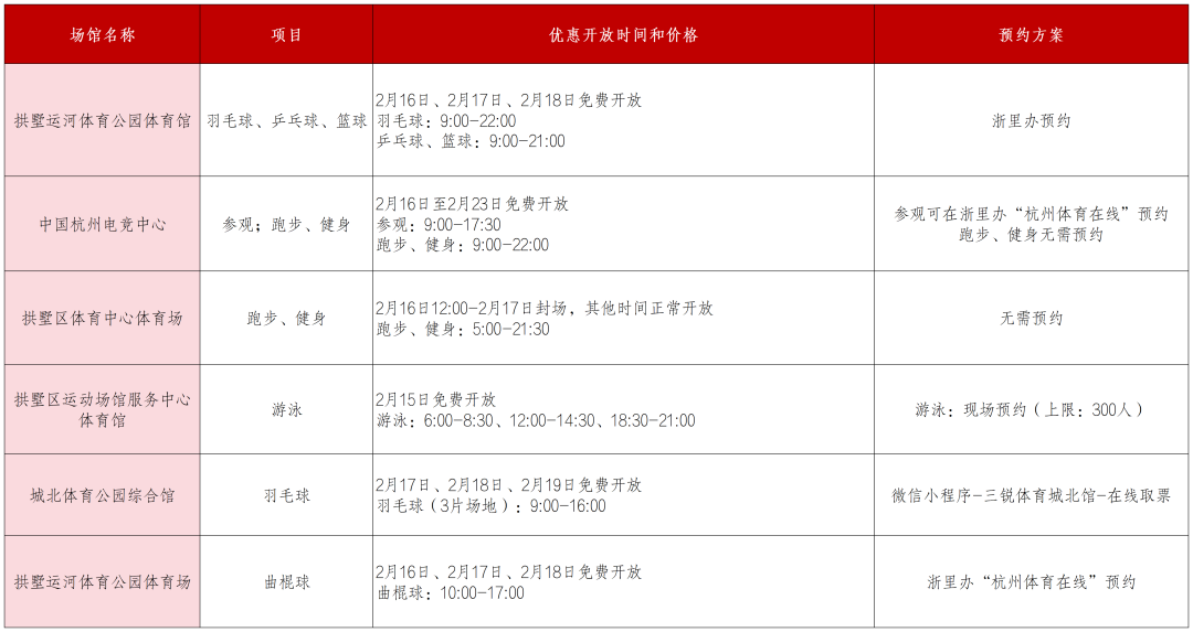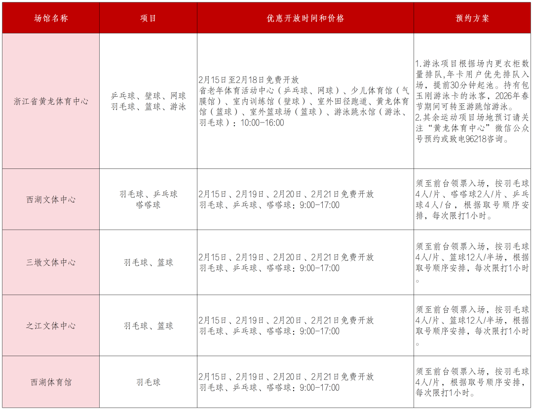 春节期间,杭州47个体育场馆免费开放!详细名单及预约方式→