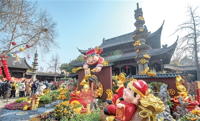 马年新春,钱王祠热闹非凡,西湖迎春花展的花艺景观生动喜庆,年味十足。 记者陈中秋 摄