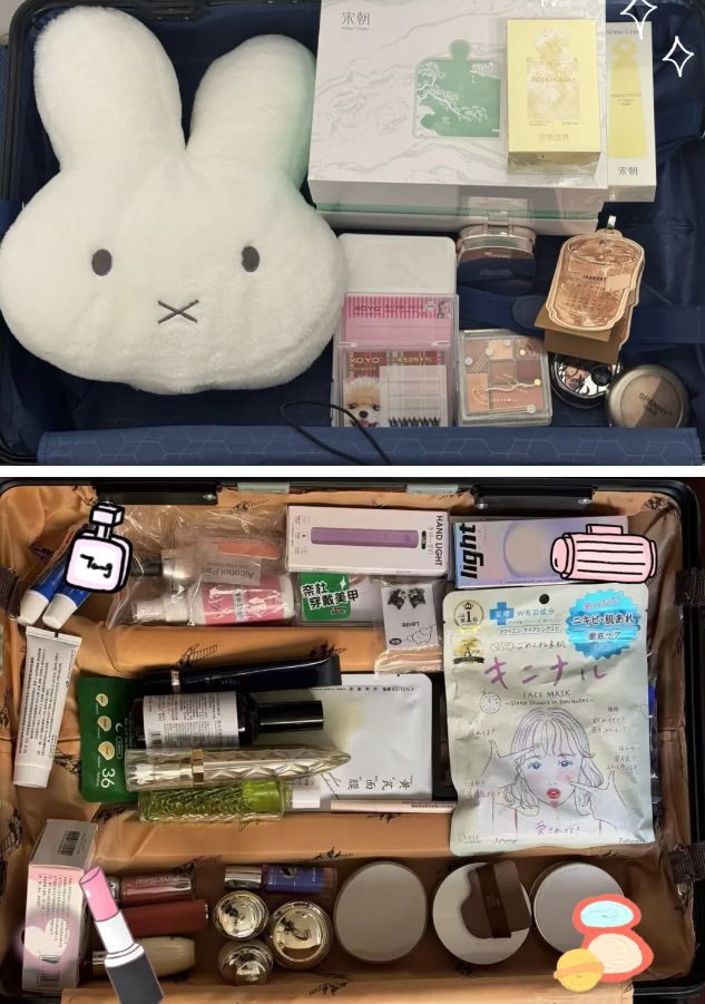 爱美之心人皆有之。女生的行李箱里除了各类服装外,也不忘添购一些美妆用品。记者了解到,这部分需要“拖”回学校的美妆品,一部分是寒假回老家后新购置的;一部分是过年访亲走友时亲朋好友赠送的,觉得不错或是“价钱很贵”带回学校使用。