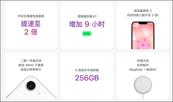 另外,这次苹果将起步存储从128GB升级到了256GB,但价格依然没变,相当于加量不加价。