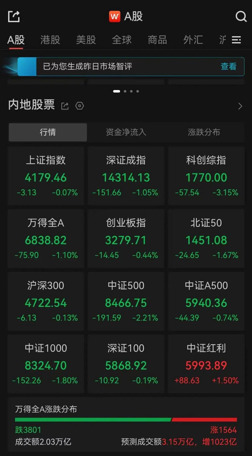 3日,A股三大指数集体高开,沪指盘中一度刷新10年新高,随后均震荡下行。截至午间收盘,沪指跌0.07%,深证成指跌1.05%,创业板指跌0.44%。全市半日成交额2.03万亿元,超3800只个股下跌。