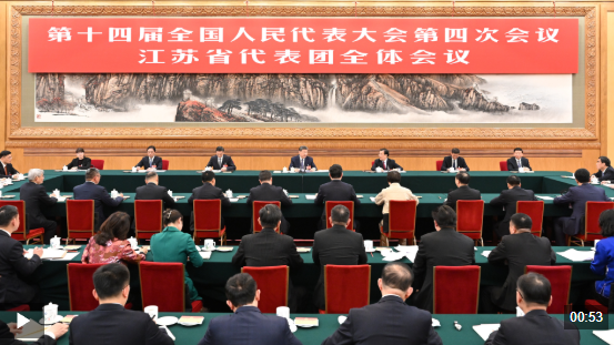 5日下午,中共中央总书记、国家主席、中央军委主席习近平参加他所在的十四届全国人大四次会议江苏代表团审议。