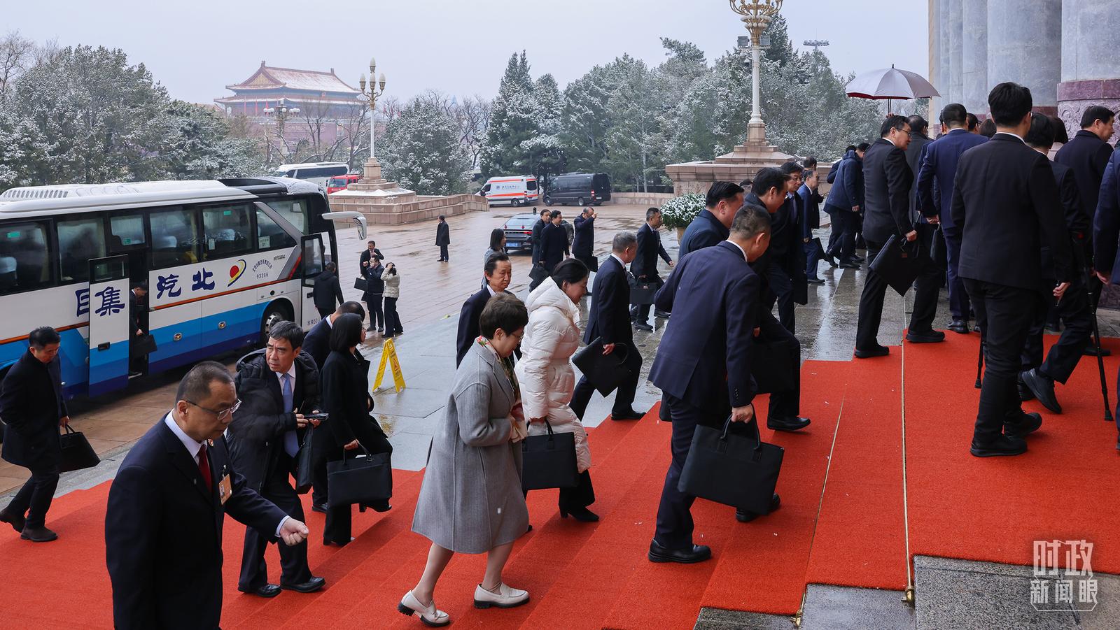 △江苏代表团抵达人民大会堂。(江苏省广播电视总台记者张正拍摄)