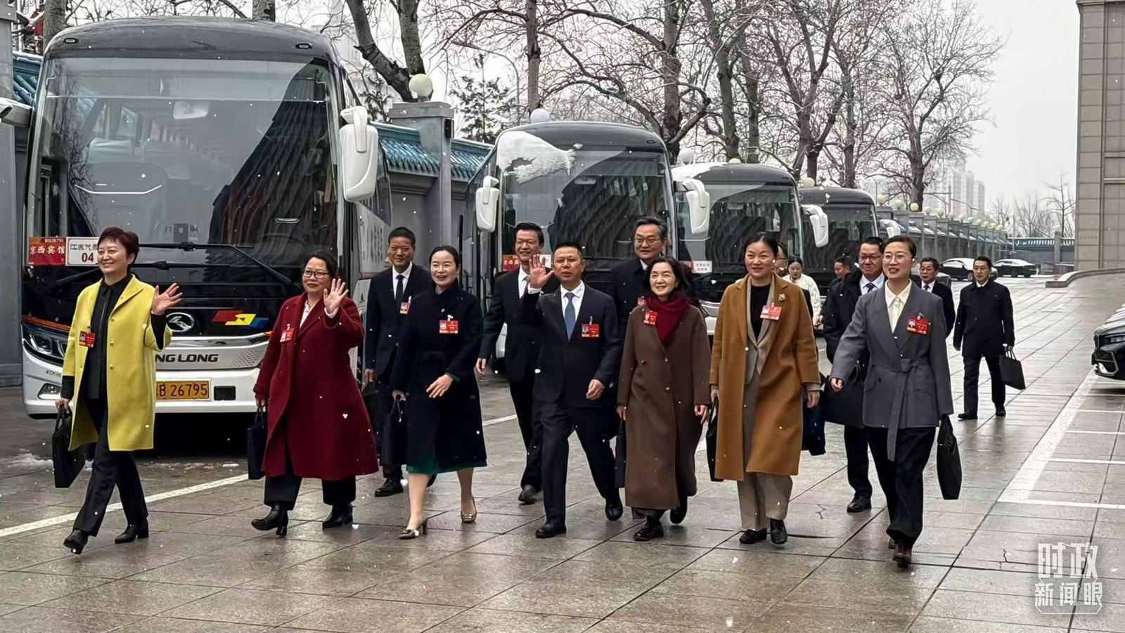 △江苏代表团乘车前往人民大会堂。(总台记者黄成拍摄)