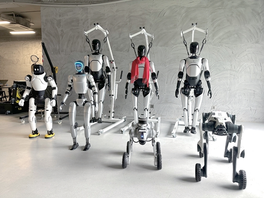 星枢智能位于钱塘区后浪公园产业园,走进办公室,仿佛进了一个机器人“托管班”:宇树科技的G1、智元机器人的灵犀X2、云深处的山猫,还有几只没来得及脱掉表演服的机器狗。
