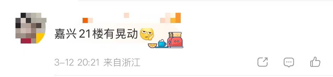 也有嘉兴网友称有震感,“嘉兴21楼有晃动”。