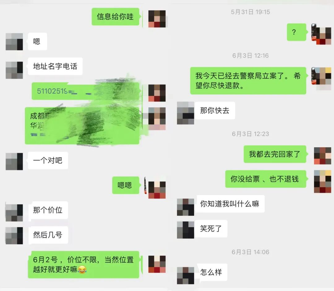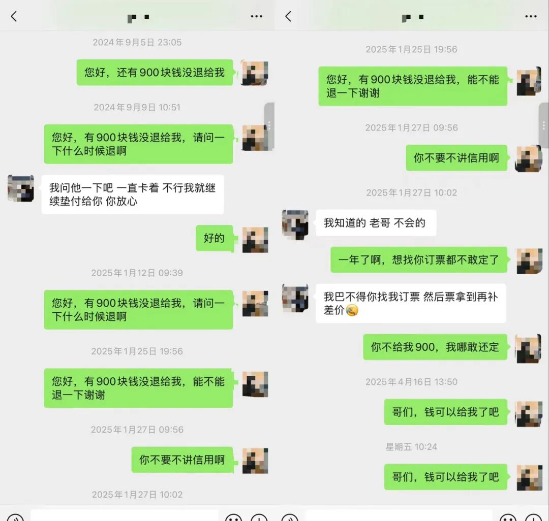 “在连续催款下,他先退款1900元,此后在长达两年的催款后,又退款1000元,剩余900元一直拖欠至今,刚开始联系他,还能回复我,后面干脆不回复了。”朱源至今也没看到喜欢歌手的演唱会,“自己抢不到票,也不敢再找黄牛了。”