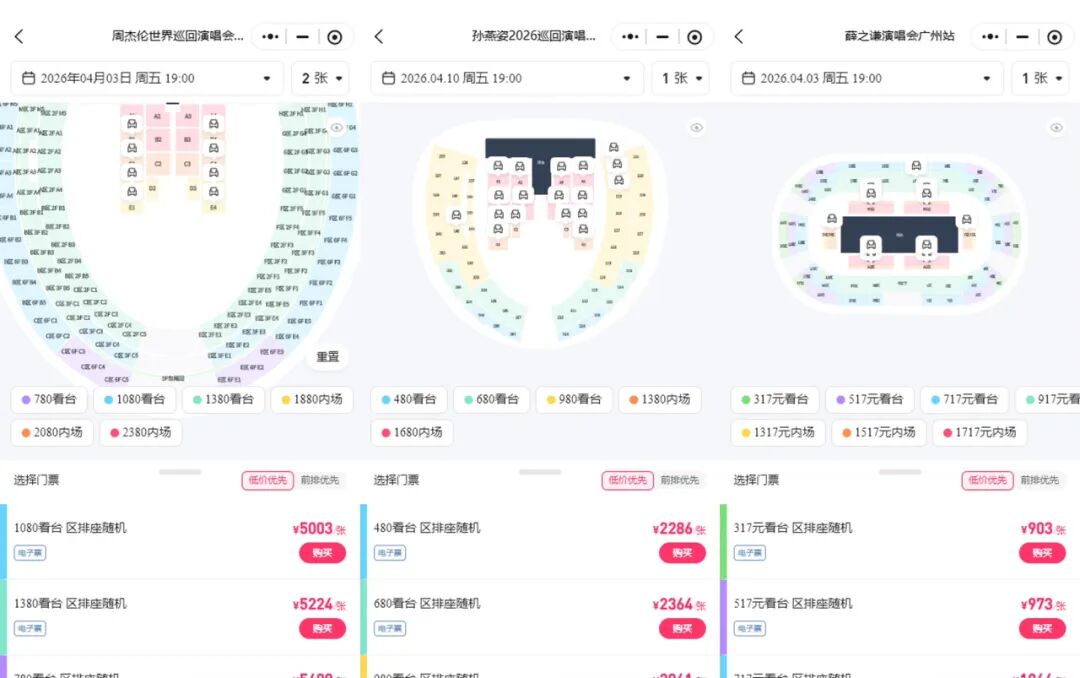 “在演唱会门票行业,由主办方定价,且公售票少,已是大家心照不宣的秘密。”经常因抢不到正价票而买黄牛票的资深歌迷何灿,最近一次演唱会门票是用两倍价格购买的陶喆的演唱会。此外,何灿还发现,不仅有专业黄牛票务公司,还涌现出各类黄牛票售卖平台,在官方售票平台无票的情况下,该平台每场次均有票,热门歌手票价更是会翻三四倍。“在黄牛平台购买的演唱会门票,基本会比自己找的黄牛销售的价格高,因为平台需要抽成。”
