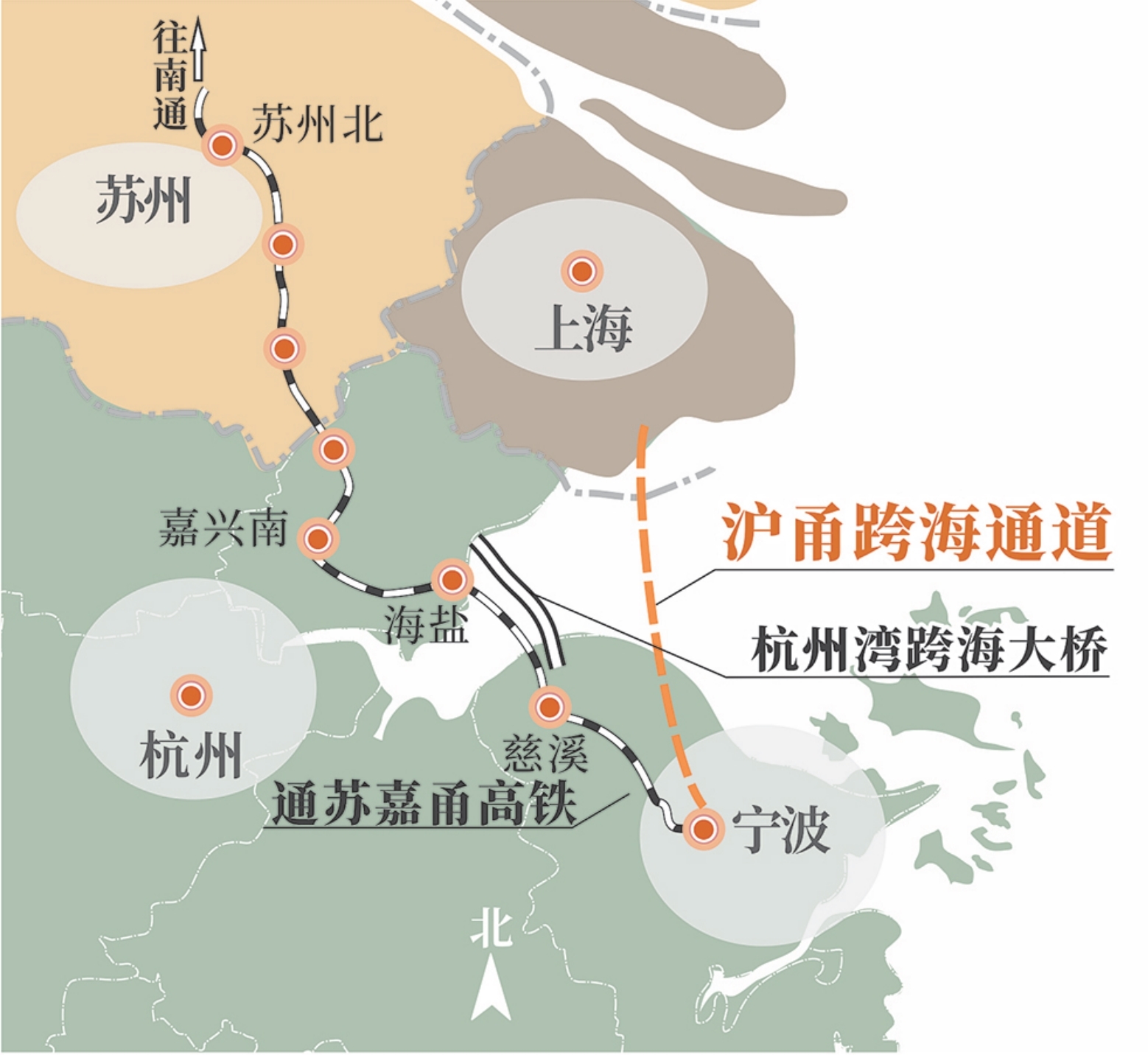 现在,已建成的杭州湾跨海大桥,正在建设的通苏嘉甬高铁,以及纳入规划的沪甬跨海通道,其本质都是“地理破局”,用一条条跨海长龙,联通沪浙、沟通沪(嘉)甬,缝合整个杭州湾,链动长三角城市群。