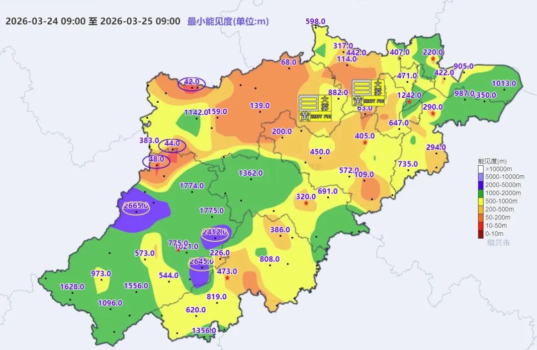 昨天杭州淅淅沥沥下了一天雨,早晨因水汽充沛,很多地方出现小于100米的低能见度天气。杭州多地发布大雾黄色预警信号。