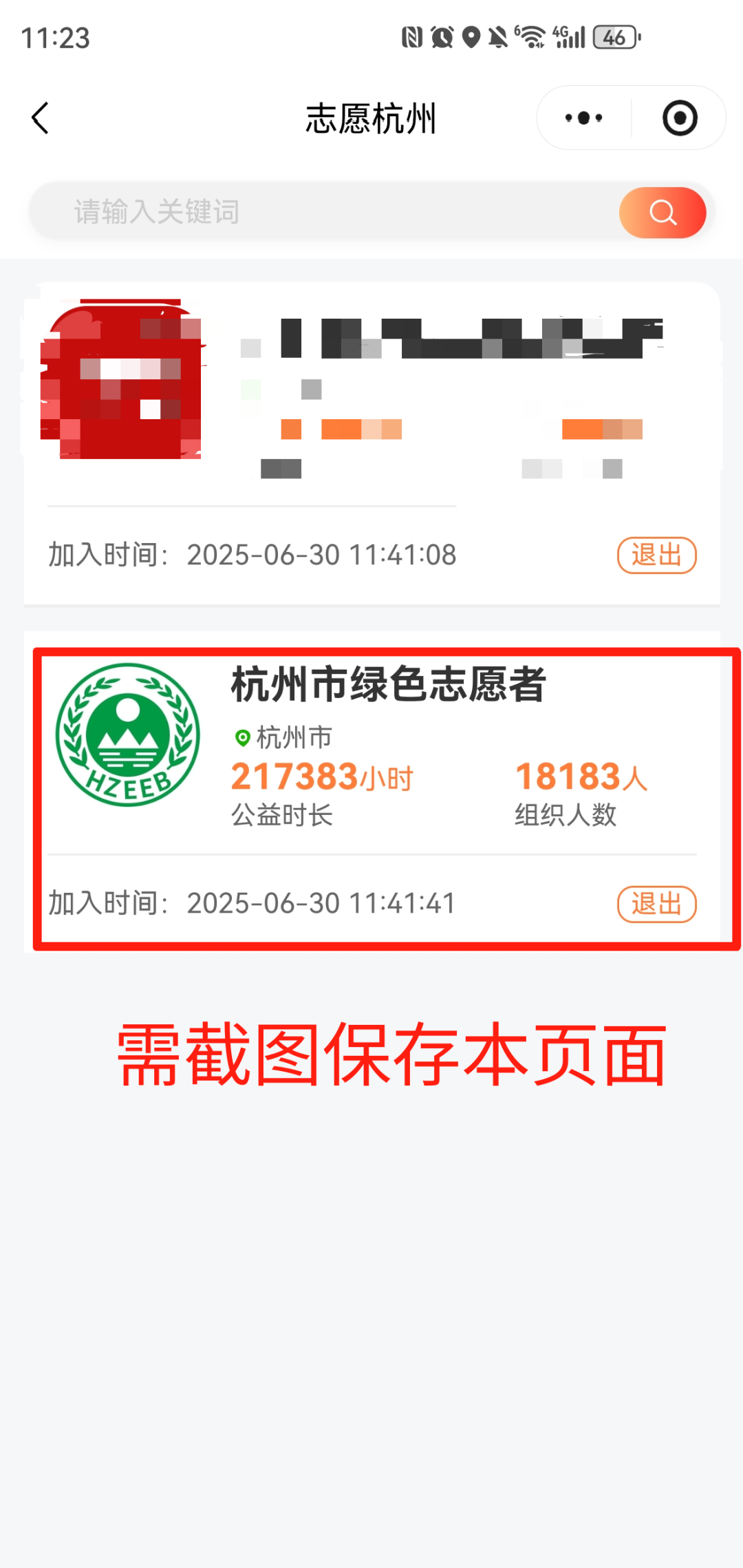 ③截图保存含“杭州市绿色志愿者”组织页面。
