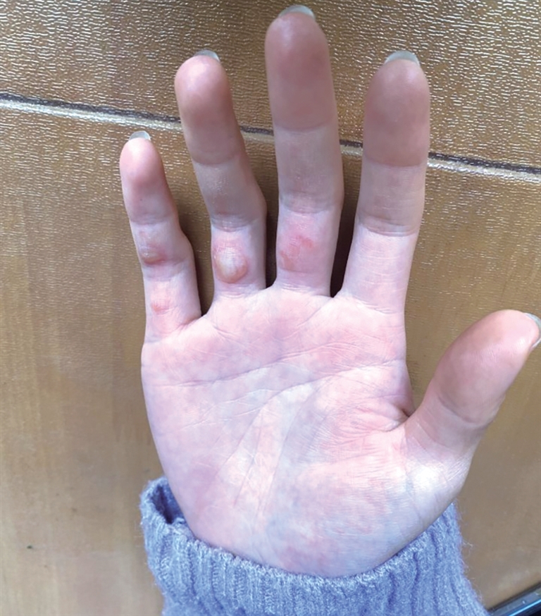 这几天不停炒茶,付晓婷手上起了泡