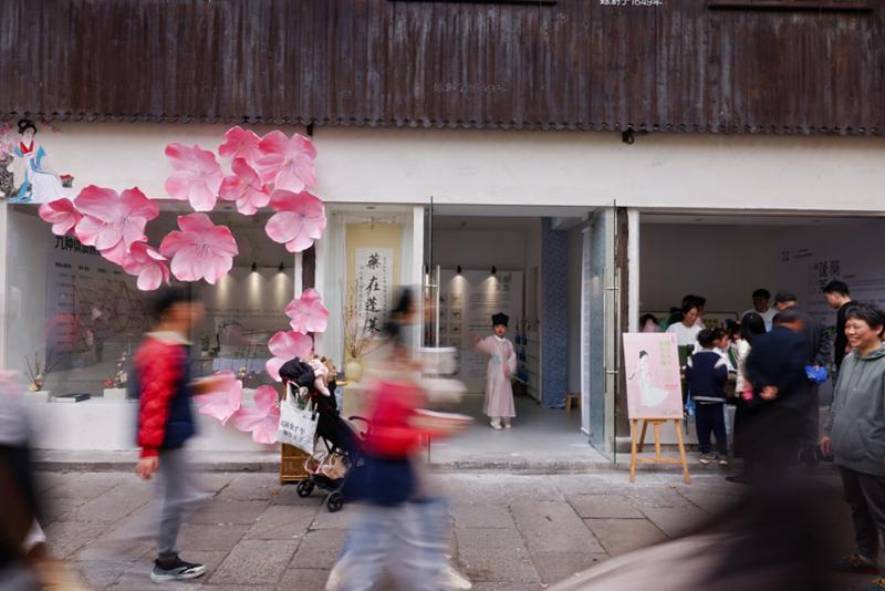 活动现场,飞花令互动环节引来众人驻足。孩子们扮演的IP形象向路人发出诗词挑战,以“花”“山”为关键词接续古句。一时间老幼皆参与,诗词声此起彼伏,千年文脉在青石板路上流淌重现。