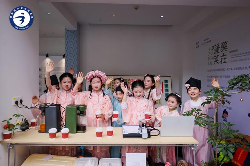 3月28日下午,杭州桥西历史文化街区的青石板路上人头攒动。身着唐宋服饰的小学生们化身“桃花仙子”与“陶渊明”,手持竹简吟诵古诗;隔壁中药茶饮体验区内,“小小中药师”们正熟练地为路人冲泡枸杞菊花茶,讲解药材功效。这场名为“药在蓬莱”的联合策展活动,以沉浸式体验打破传统与现代的边界,成为杭州市卖鱼桥小学文润校区传统文化教育的创新实践样本。