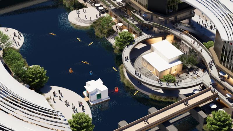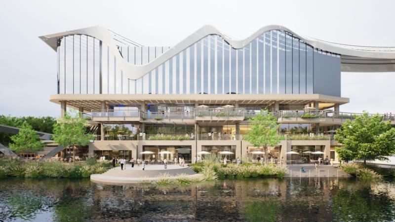 未来,水云间商业中心将以石、木、白三色为主色调,划分潮酷、松弛、时尚三大风格区域,结合优质滨水资源塑造特色水岸广场,打造“蓝眼泪”夜景打卡地,营造放松身心、亲近水岸、更显松弛的青年社交场景。
