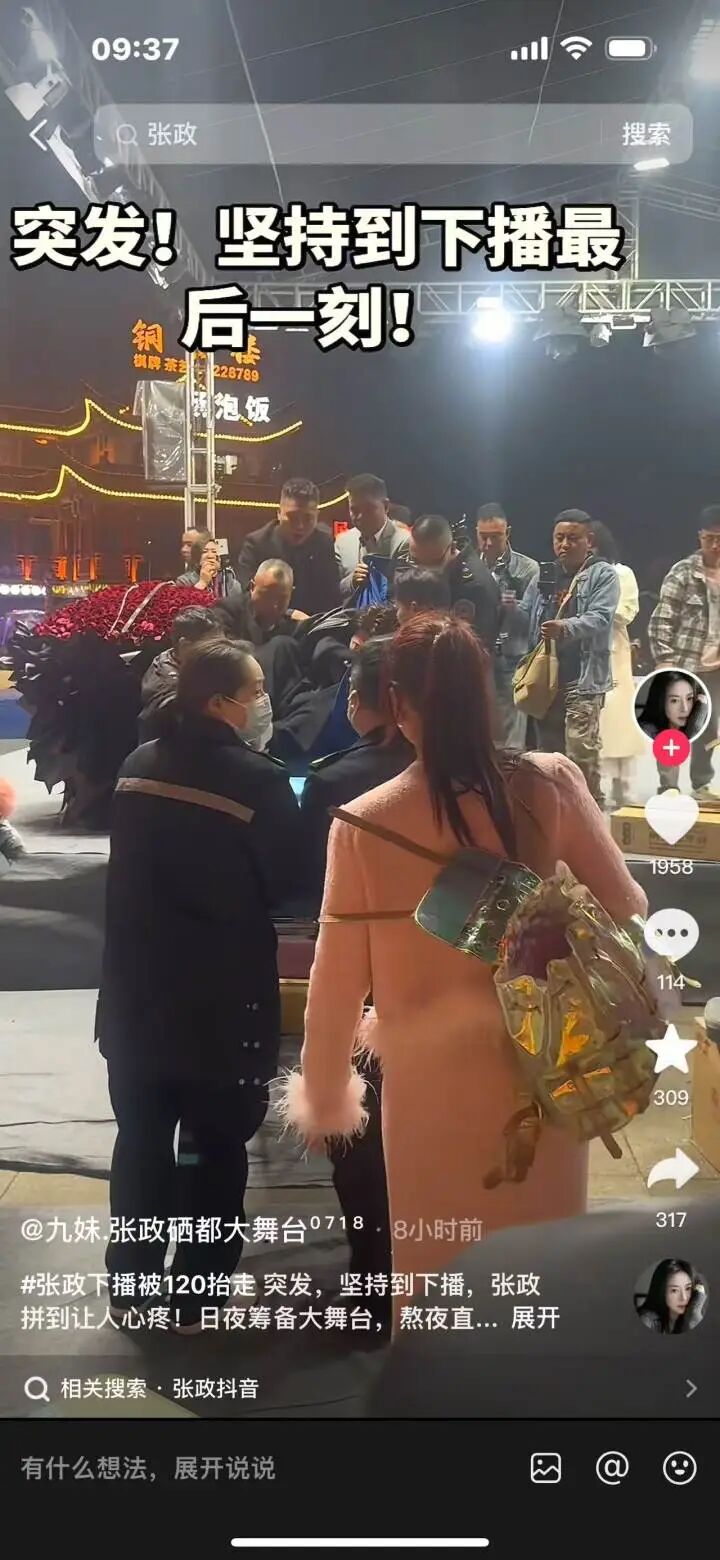 有网友称,此前,张政连续十多日高强度工作,日夜筹备舞台彩排和深夜直播,导致体力严重透支。