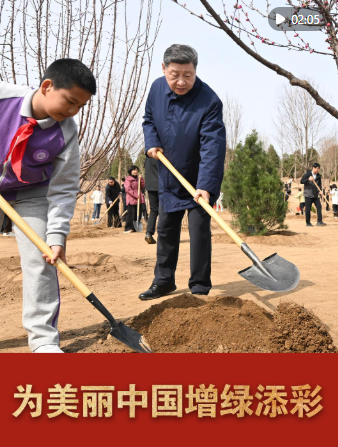 3月30日,习近平总书记在参加首都义务植树活动时,接连种下油松、北京牡丹、榆叶梅、杜仲、元宝枫等多棵树苗。不同树种绘就四季斑斓,为山川大地增添锦绣。