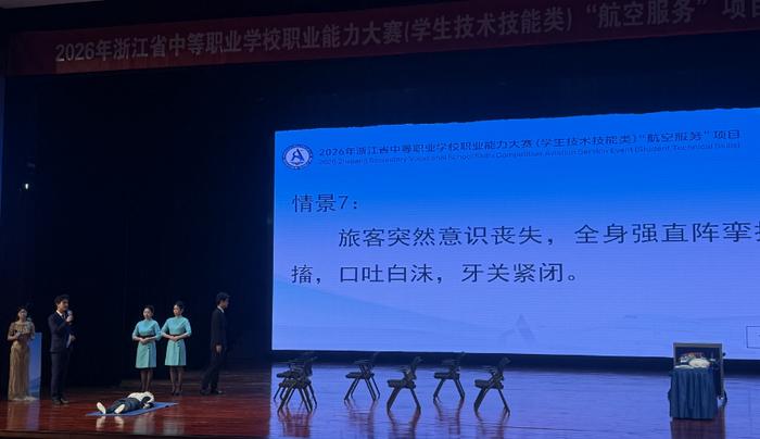 4月2日,2026年浙江省中等职业学校职业能力大赛(学生技术技能类)“航空服务”项目在浙江旅游职业学院开赛,全省18支队伍进行最后的决赛。