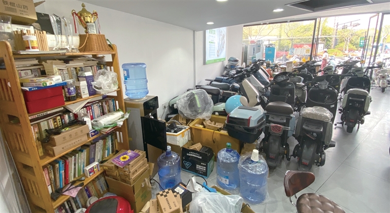 记者和老王聊天时,他老婆在店里跑来跑去,只要有客户,就上前介绍电动车,一直没停过。