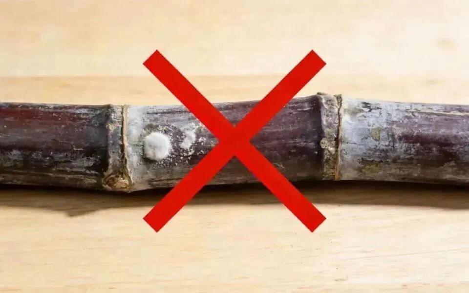 ●霉变甘蔗外表可能有霉斑,按压质地较软。