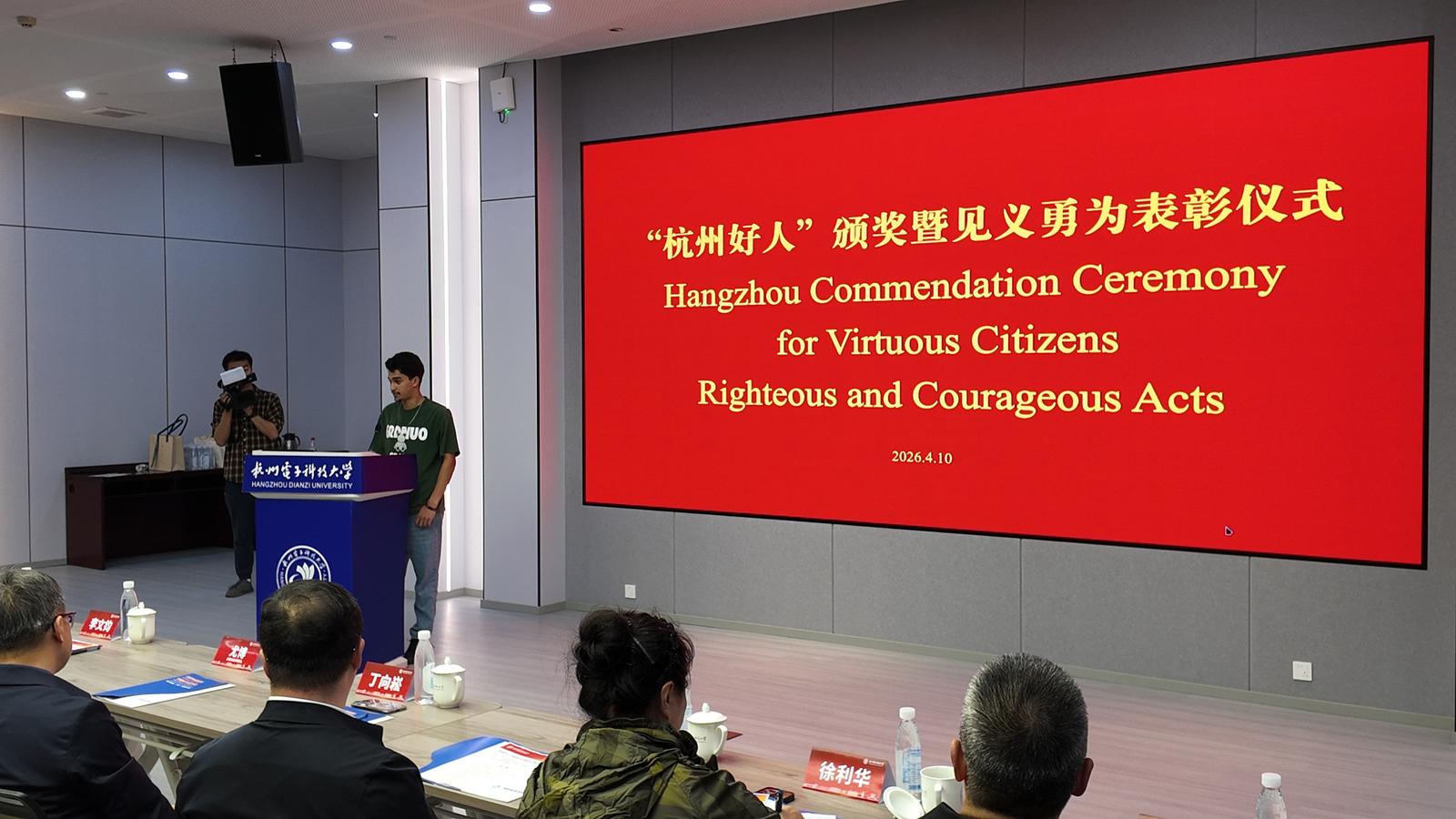 4月10日下午,杭州电子科技大学校园里举行了一场“杭州好人”颁奖暨见义勇为表彰仪式。