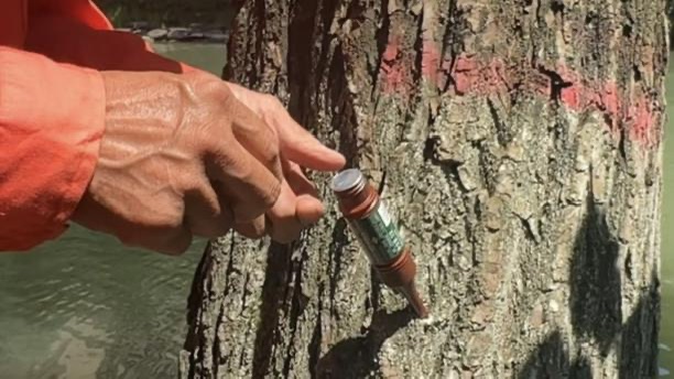 “做好标记后,接下来就要给这些标记好的雌柳树打‘抑制剂针’,而且得等柳絮飘散期结束后再打,这个时间节点打药效果才最好,也不会损伤树木。这种针是专门的植物生长调节剂,通过树干注射的方式,把药剂输送到树体内部,能有效抑制雌性柳树的花芽分化,让它没法孕育产生飞絮的种子。”养护人员还介绍,这项柳絮防治技术经过多年实践验证,效果十分显著,给雌性柳树打完“抑制剂针”后,来年柳絮抑制率能达到70%—80%,能大幅减少春季飞絮泛滥的情况,既不影响柳树的正常生长,也能保住河边柳树成荫的景观效果,还能解决市民饱受飞絮困扰的难题。