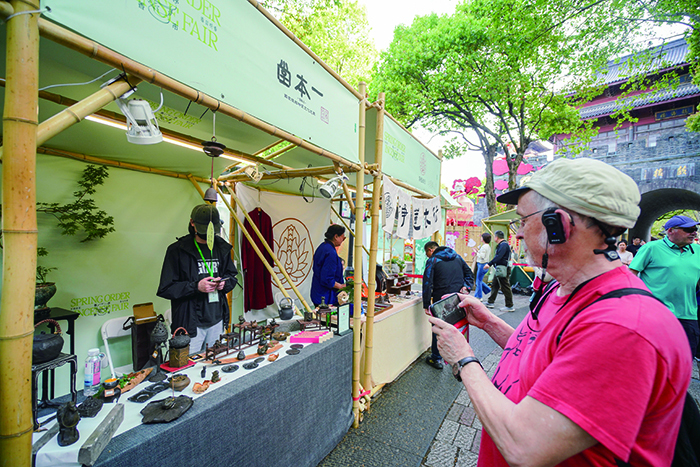 昨天上午,一场以“香”为主题的春日雅集——“春序香市”在清河坊历史街区鼓楼小广场上开启。香市为期三天,联动街区内17家老字号与特色文化空间,现场以南宋画家马远的《竹涧焚香图》为灵感,搭建了一片古韵十足的清幽竹林,铺陈香席,汇集药香、茶香、脂粉香等各种香源,推出打香篆、做香囊、制艾条等免费体验课程和传统香道、中医艾灸、精油疗愈等雅集活动,再现了南宋时期坊巷间的百香氤氲和宋人日常生活的仪式感。