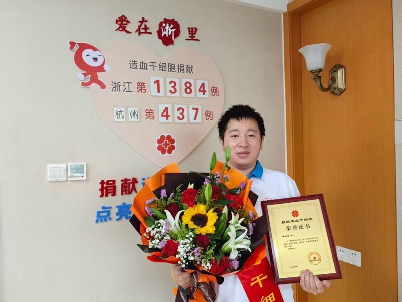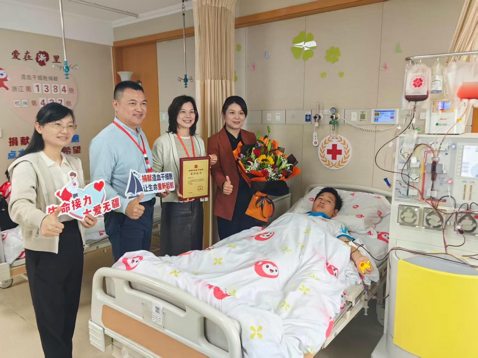 4月13日,在杭州某造血干细胞定点采集医院,经过4个多小时的采集,黄培棋成功捐献了149毫升造血干细胞混悬液,成为浙江省第1384例,杭州市第437例造血干细胞捐献者。