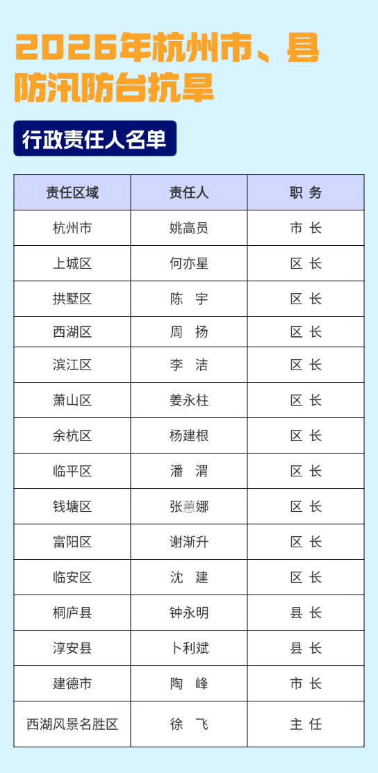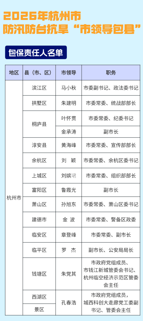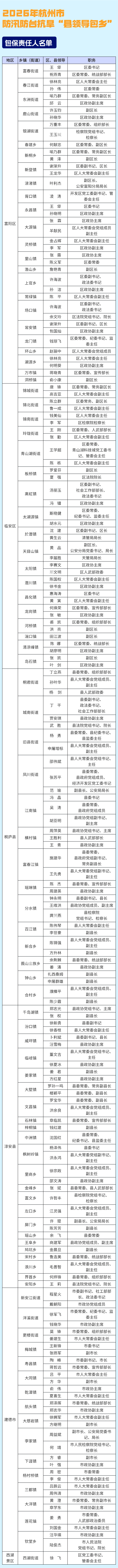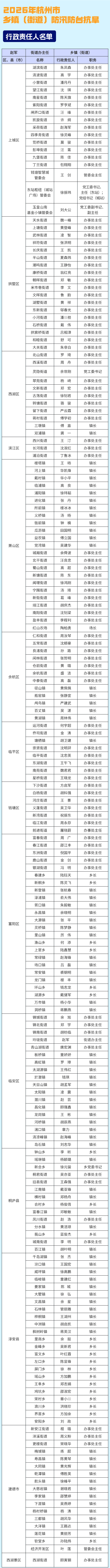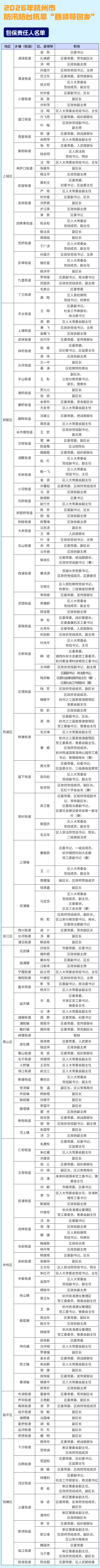 今天,杭州正式进入汛期。现将全市2026年度防汛防台抗旱行政责任人和包保责任人名单予以公布。一起来看↓↓