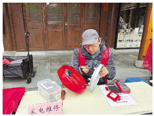 自2009年起,他的店里就贴着“米市巷街道助农助残”的牌匾。他每月要服务两到三位老人或残疾人,至今已有两百多名社区老人享受过他的免费或优惠服务。每年3月5日学雷锋日,他都会在社区门口免费帮居民修家电。此外,他还义务帮社区维修活动中心的空调、音响设备等,这一做就是十余年。