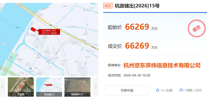 6.63亿元,京东在杭州拿地!亚运村旁,距钱塘江约160米