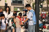 清晨七点半,杭州市文澜第二小学校门口的十字路口,身着蓝色马甲的“澜爸爸交通义警”正站在信号灯前,目送上学的孩子们一一穿过斑马线