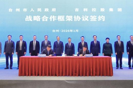 The Taizhou government and Zhejiang Geely Holding Group signed a strategic cooperation framework agreement on Jan 8, marking deeper collaboration and a significant step forward for Taizhou's manufacturing sector.